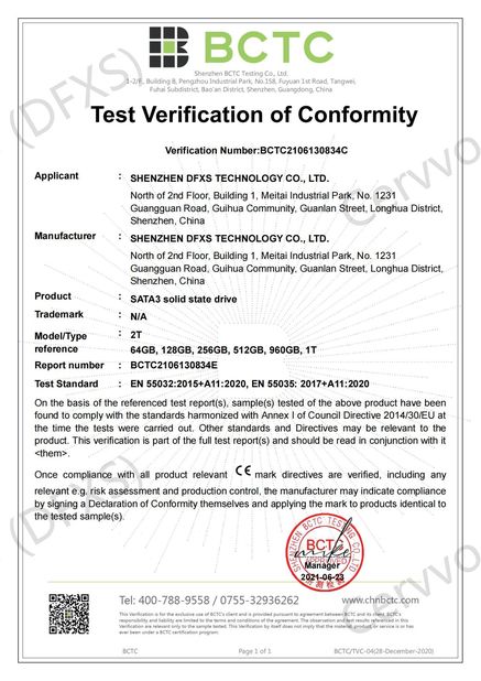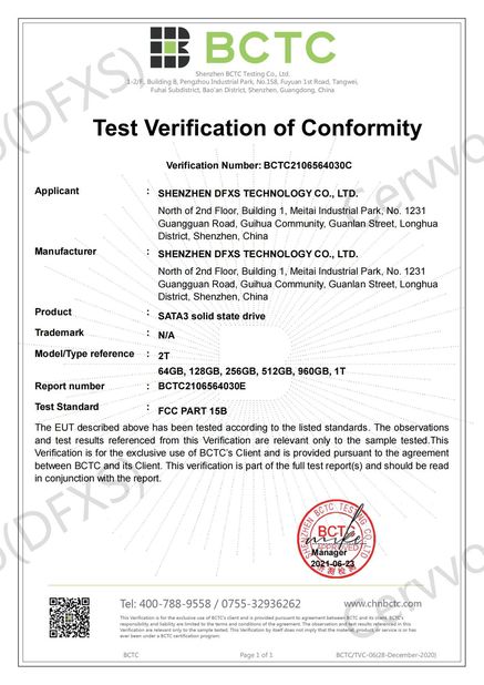 | Standard: | FCC for SATA3 solid state drive |