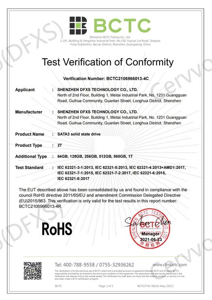 | Standard: | RoHS for SATA3 Solid State Drive |