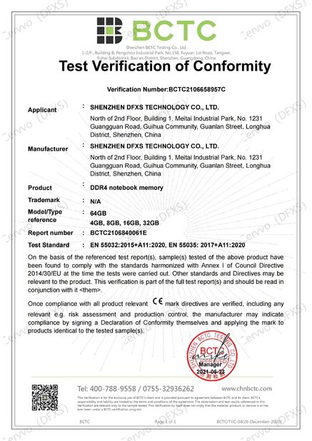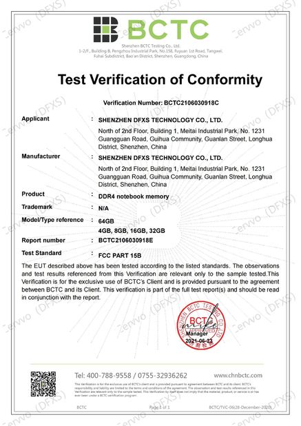 | Standard: | FCC for DDR4 notebook memory |