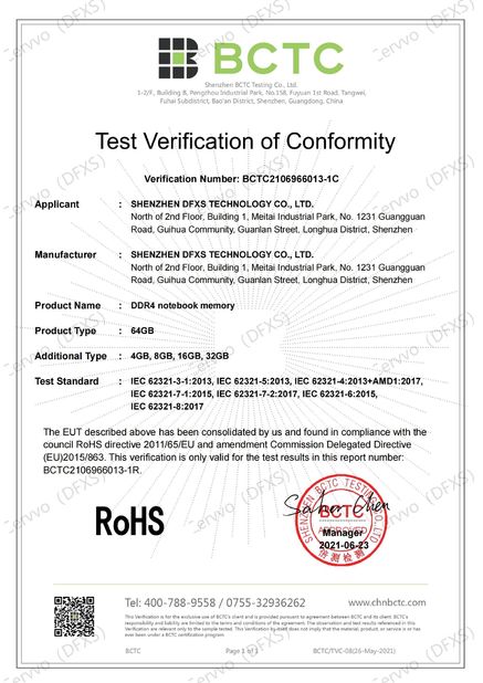 | Standard: | RoHS for DDR4 SODIMM RAM |